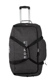 Great design and smart looking, this roomy travel bag is ideal for longer trips. It has a sporty look with an all grey body, black straps and white logo stitching. There is a zippered pocket on the outside and a large zippered pocked on the inside the main compartment. There is also a large zipper on the base inside to get in between the lining and the main compartment. Handles on all 4 sides, an adjustable padded shoulder strap and 2 wheels on the base at one end with an extendable handle to make travelling easy. The removable shoulder strap measures 59″ from hook to hook at its longest.