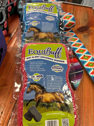 Pack away your grooming brushes because all you need is Equibuff. This hardworking sponge does the job of many brushes. Equibuff gets rid of dried in mud, dust and dander. It erases sweat and saddle marks and is flexible and mild enough to use on your horses face and sensitive areas. It works great on moulting hair. You can also use it wet to scrub away ground in dirt and make your shampoo go further.