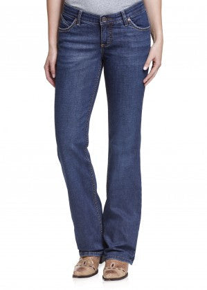 Features: Sits above hip, No Gap elastic waistband, flat seams, angled patch watch pocket, two front scoop pockets, comfort fit seat and thigh, full flex knee, boot cut