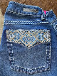 Features: Boot Cut - 34 Inch leg, five pocket styling, back pockets with feature embroidery & embellishments, all over feature stitching, logo rivets at stress points, new improved fit