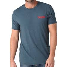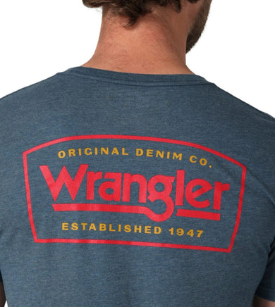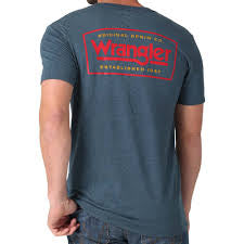 Since 1947, Wrangler® has been creating high-quality denim for cowboys, trendsetters, and everyone in between. Become a part of that legacy with Wrangler’s original denim company regular fit t-shirt. Made of a lightweight cotton blend, this shirt is a testament to the quality craftsmanship and American design that has made Wrangler a household name. On the back, it features an original logo design inspired by an advertising campaign to add a bit of heritage style to your look. Wear it with your Cowboy Cut® jeans for a look that celebrates your favorite denim brand from head to toe.