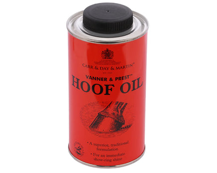 Discover Carr & Day & Martin's Vanner & Prest Hoof Oil, a classic formulation designed to maintain healthy hooves while providing a traditional shine. Available in a convenient 500ml size, this hoof oil combines the benefits of pine tar oil and mineral oil for comprehensive hoof care.