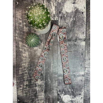 72" x 1.75" Premium Quality tooled leather with cactus Print Nylon latigo strap. This tie strap features premium quality webbed nylon with leather tie. Measures 6'. 18" x 1.75" Premium Quality tooled cactus Design Off Billet. This billet features premium quality woven 2 ply nylon with 6 pre punched holes.