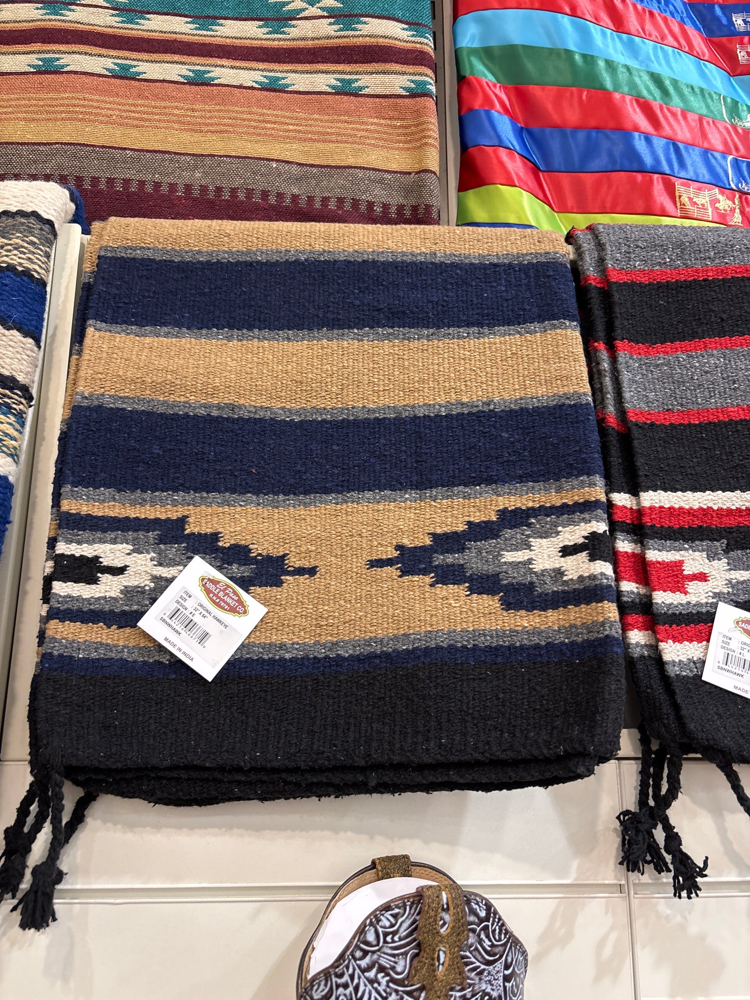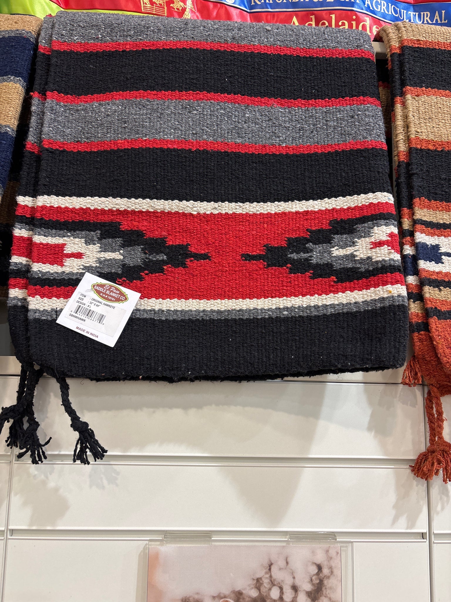 Original Hawkeye Saddleblankets offer a perfect blend of affordability and quality. Handwoven from imported acrylic yarn, these saddle blankets are lightweight yet durable, making them a practical choice for both decorative and functional use. Shipped in an assortment of beautiful color combinations, they provide vibrant style and versatility for any collection.