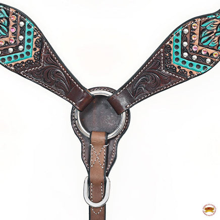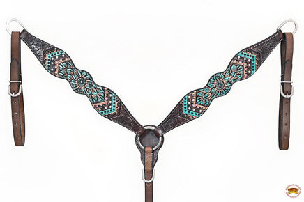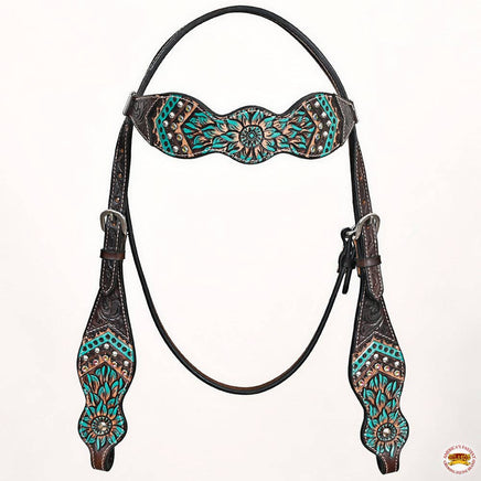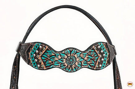 * Leather : Hilason Uses Top Quality Genuine Western Leather. * Color : Brown. * Size : Horse. * Design: Hand Tooled Flower With Turquoise Inlay. Our exceptional tack set, a comprehensive collection of high-quality equestrian gear designed to enhance your riding experience. This meticulously crafted set combines functionality, durability, and style, making it an essential addition to your equestrian arsenal. The tack set are all crafted from premium-grade leather to ensure exceptional durability and longevity. The leather is carefully selected for its strength and suppleness, providing a comfortable fit for your horse while withstanding the rigors of regular use.