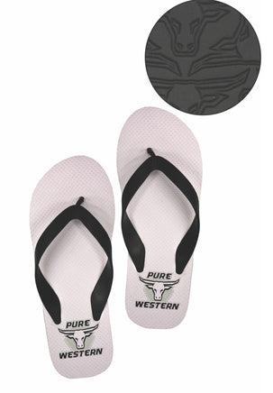 Fabric: White footbed, black sole, 5 plug rubber strap