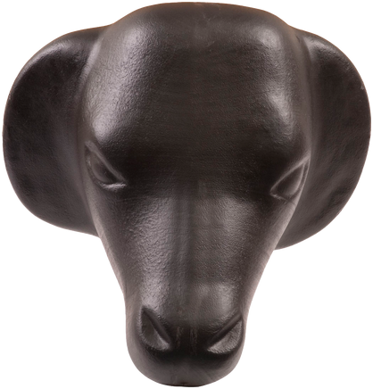 Black plastic calf head with 12″ ear spread. Comes with removable spikes. Calf head can be used by inserting the durable metal spikes into a bale of hay.